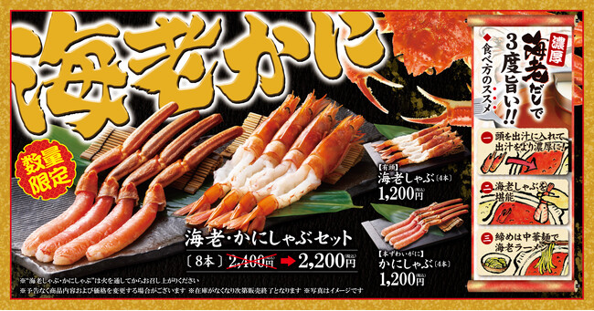 ・「海老・かに しゃぶセット(8本)」(4本ずつ):税込2,200円