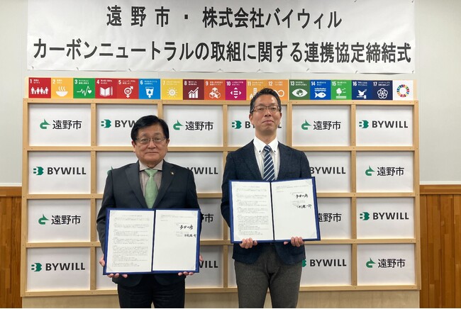 岩手県遠野市とバイウィルが「カーボンニュートラルの取組みに関する連携協定」を締結