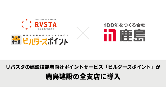 株式会社リバスタ(本社:東京都江東区、代表取締役:高橋巧、以下 当社)は、当社が提供する建設技能者向けポイントサービス「ビルダーズポイント」が、鹿島建設株式会社(本社:東京都港区、代表取締役会長兼社長:押味至一、以下 鹿島建設)の全支店に導入されたことをお知らせします。