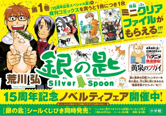 『銀の匙 Silver Spoon』15周年記念! 特製ミニクリアファイル(全3種) がもらえる書店ノベルティフェア開催!