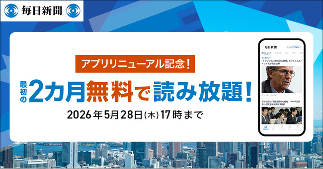 毎日新聞社のニュース配信サービス「毎日新聞デジタル」 は2026年4月7日(火)から5月28日(木)まで、「アプリリニューアル」キャンペーンを実施します。