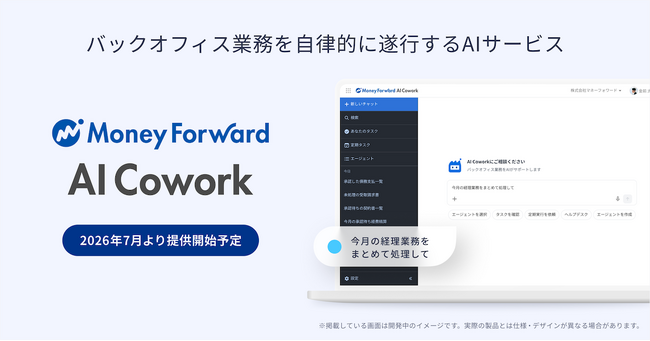 バックオフィス業務を自律的に遂行するAIサービス『マネーフォワード AI Cowork』を2026年7月より提供開始予定