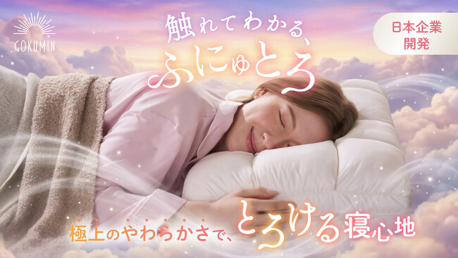 【GOKUMIN】“枕難民”に寄り添う新発想。髪の毛より細い極細繊維を採用した、“とろける沈み込み”をかなえる「ふにゅとろまくら」を新発売