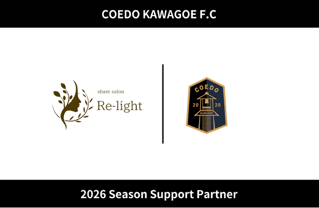COEDO KAWAGOE F.Cを運営するCOEDO KAWAGOE F.C株式会社(埼玉県川越市、代表取締役 有田和生)は、ネイル・エステ・ヘッドスパ・整体・よもぎ蒸しなど、美容に特化した設備を備え、初期費用ゼロで利用できる美容特化型レンタルサロンを運営するシェアサロン Re-light(埼玉県川越市、代表 立原奈穂美)と2026シーズンのサポートパートナー契約を締結したことを発表いたします。
