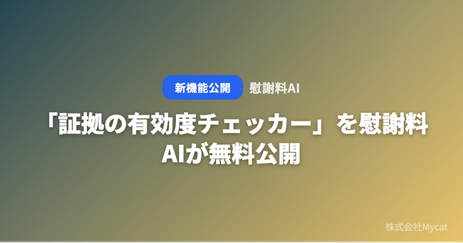 株式会社Mycat(本社:東京都目黒区)は、AI慰謝料シミュレーター「慰謝料AI」(https://isharyo.xyz)において、証拠の有効度チェッカー(https://isharyo.xyz/tools/evidence-checker)を新たに無料公開しました。
