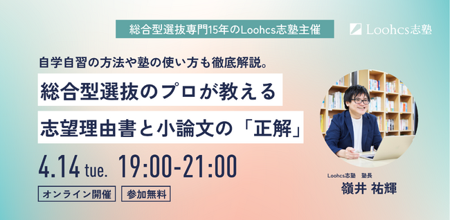 本セミナーでは、総合型選抜指導のプロであるルークス志塾代表・嶺井が登壇し、志望理由書の書き方の基礎から大学・学部別対策、小論文の自学自習の進め方、さらには塾の効果的な活用方法まで、実際の指導内容に基づいて具体的に解説します。