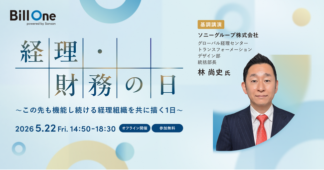 Sansan株式会社が提供する経理AXサービス「Bill One」は、ビジネスイベント「経理・財務の日~この先も機能し続ける経理組織を共に描く1日~」を、2026年5月22日(金)14:50より室町三井ホール&カンファレンスにて開催いたします。