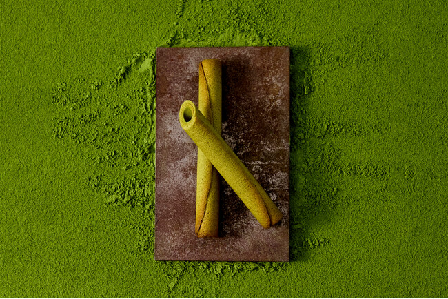 くるっと巻いた抹茶生地のシガールに抹茶のチョコレートを詰めました。宇治抹茶の甘みと旨みがバターの豊かな風味と融合し、それぞれが引き立つ絶妙な配合バランスに仕立てました。※香料不使用