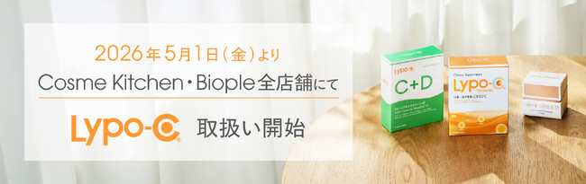 株式会社スピック(本社:神奈川県鎌倉市、代表取締役社長:芝田崇行)は、リポソーム型ビタミンCサプリメント「Lypo-C(リポシー)」およびスキンケアブランド「Lypo-C SKINBEAUTY」を、ナチュラル&オーガニックコスメのセレクトショップ「Cosme Kitchen(コスメキッチン)」「Biople(ビープル)」「Biop(ビオップ)」※の全店舗およびWEB STOREにて、2026年5月1日(金)より販売開始いたします。また、販売開始を記念し、「Lypo-C」の人気製品を組み合わせた数量限定の特別セットも発売いたします。