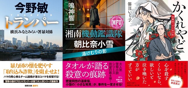 巨匠・新鋭の警察小説競演――今野敏氏と鳴神響一氏の人気シリーズ最新作、『深川あやかし屋敷奇譚』で注目の笹目いく子氏の新作など、徳間文庫4月新刊、発売!