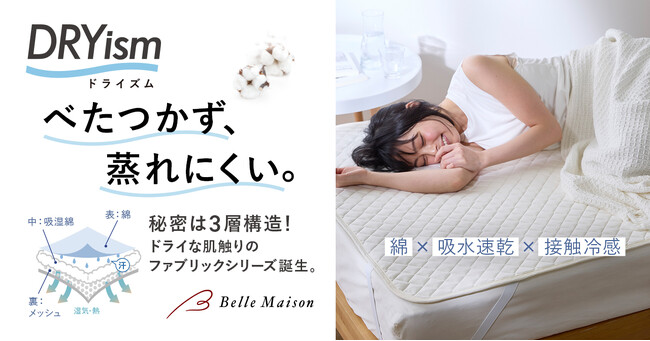 株式会社千趣会(本社:大阪市 代表取締役社長:鈴木聡 以下千趣会)の通販事業ベルメゾンは、綿の心地よい肌触りでありながらも、梅雨や熱帯夜に発生する「蒸れ」や「ベタつき」による不快感を軽減する新しい夏用ファブリックシリーズ「DRYism(ドライズム)」(以下、ドライズム)として、寝具やインテリアアイテム計8商品を2026年4月9日(木)に発売します。(https://www.bellemaison.jp/)