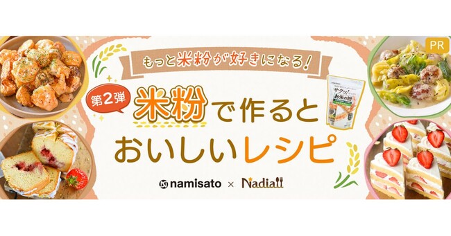 Nadia株式会社(東京都港区/代表取締役社長 葛城嘉紀 以下「Nadia」)と株式会社波里(栃木県佐野市/代表取締役社長 藤波孝幸 以下「波里」)がタイアップし、特別企画ページ【もっと米粉が好きになる!米粉で作るとおいしいレシピ第2弾】を公開いたしました。