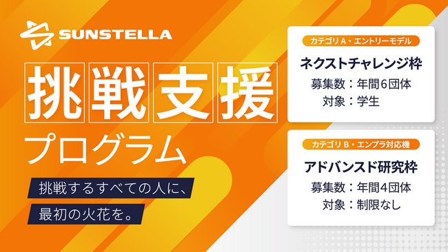 「サンステラ挑戦支援プログラム」応募フォームより受付2026年4月~11月期:受付中 支援開始:2026年12月予定