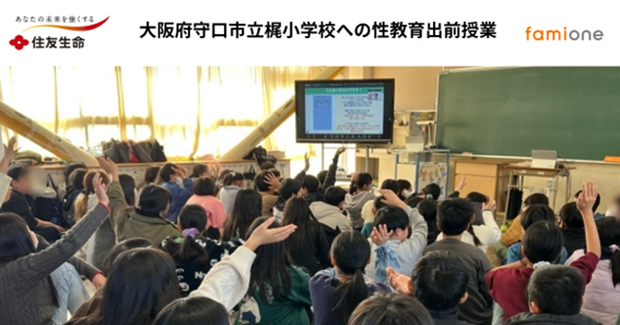 住友生命とファミワンの共創プロジェクトの一環として、大阪府守口市立 梶小学校にて性教育の出前授業を開催しました