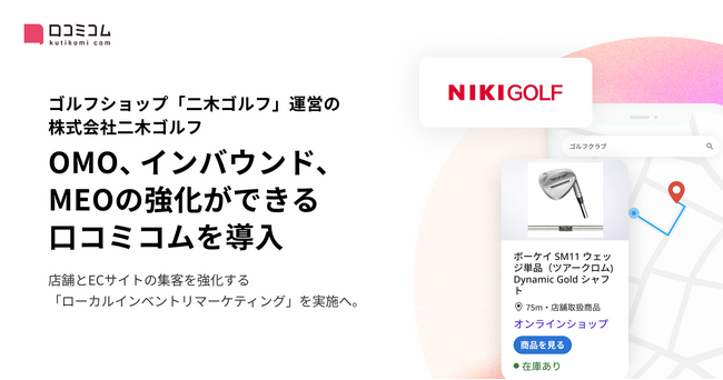 株式会社mov(代表取締役:渡邊 誠、本社:東京都渋谷区)が提供する店舗向け集客一元化プラットフォーム「口コミコム」が、ゴルフショップ「二木ゴルフ」を運営する株式会社二木ゴルフ(代表取締役社長:二木一成、本社:東京都板橋区)において、OMO強化および実店舗・自社ECサイトへの集客強化を目的としたローカルインベントリマーケティング施策として採用されたことをお知らせいたします。