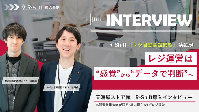 株式会社天満屋ストアでは、時間帯別売上データを起点に、シフト作成にとどまらない“データ主導の店舗運営”を実践しています。2023年春にシフト管理システム「R-Shift」をレジ部門に導入し、今年で約3年。今回はその節目に、運営担当者へのインタビューを通じて、現場に起きた変化と取り組みの実態を伺いました。