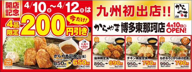 【記念特価】九州初出店!からやま博多東那珂店は2026年4月10日(金)~12日(日)の3日間限定で代表メニュー4品がとってもお得!