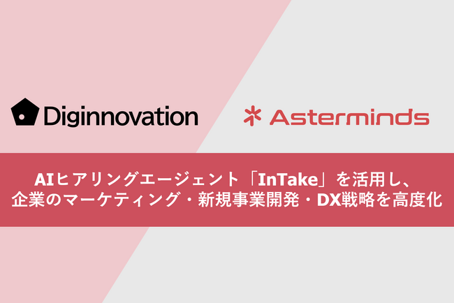 デジノベーション株式会社、Asterminds株式会社と業務提携。AIヒアリングエージェント「InTake」を活用し、企業のマーケティング・新規事業開発・DX戦略を高度化