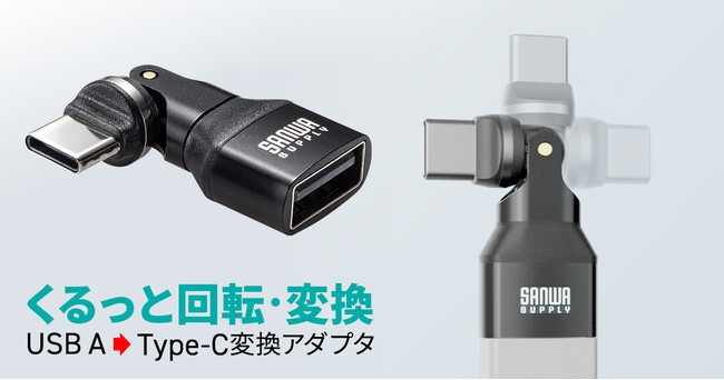 コネクタが自在に540度回転、USB AコネクタをType-Cに変換するアダプタを発売