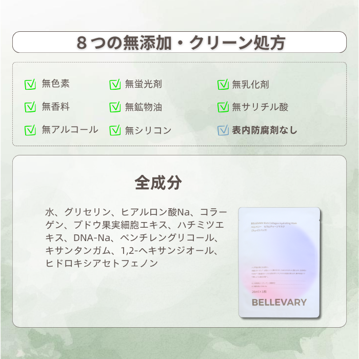 無色素・無香料・無鉱物油・無アルコール・無パラペン・無シリコン・無乳化剤・無サリチル酸・表内防腐剤なし