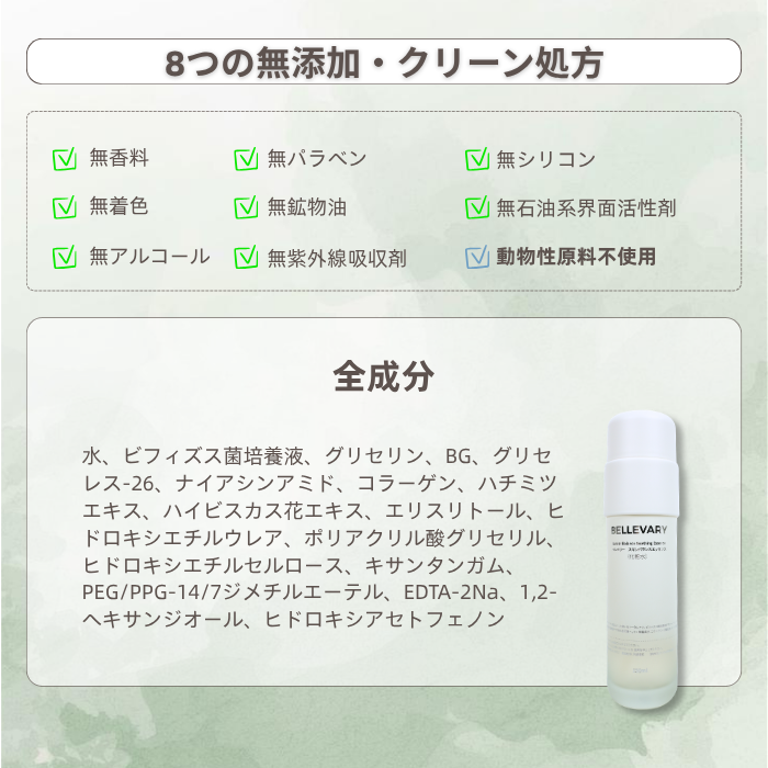 - “術後12時間後の肌”に着目したホームケア発想BELLEVARYは、美容医療施術後の肌状態を想定し、術後の肌コンディション(バリア機能の乱れ、水分バランスの変化、外部刺激への過敏化等)に配慮したホームケア化粧品として開発しました。デリケートな肌にやさしく寄り添いながら、日常使いしやすいスキンケアとして提案します。