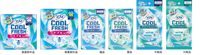 『ソフィ クールフレッシュ 超涼感ナプキン』『ソフィ クールフレッシュ おりものシート』『ソフィ クール デリケートウェットシート』