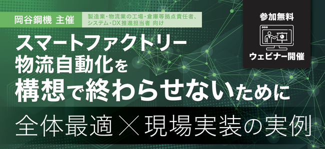 本ウェビナーは、製造業・物流業の工場・倉庫拠点責任者、システム・DX推進担当者を対象に、スマートファクトリーや物流自動化を「構想」で終わらせず、実際の現場実装につなげるための考え方や具体策を紹介する全3回のオンラインセミナーです。