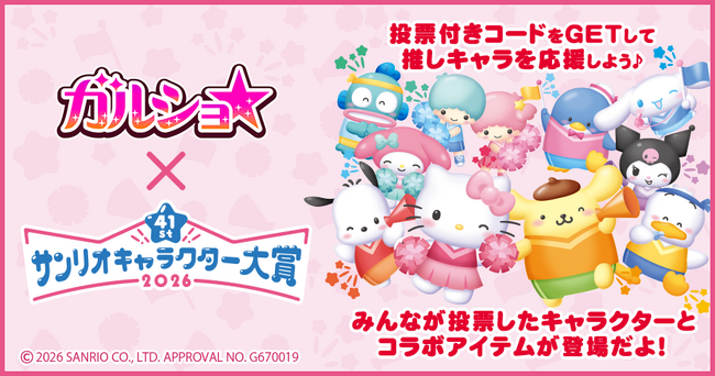 株式会社enish(本社:東京都港区、代表取締役社長:安徳 孝平、以下enish)が提供するアパレルショップシミュレーションゲーム『ガルショ☆』は、株式会社サンリオ(本社:東京都品川区、以下サンリオ)が主催する今年41周年を迎えるサンリオキャラクターの人気投票イベント「2026年サンリオキャラクター大賞」とのコラボレーションを2026年4月9日(木)より開催いたします。