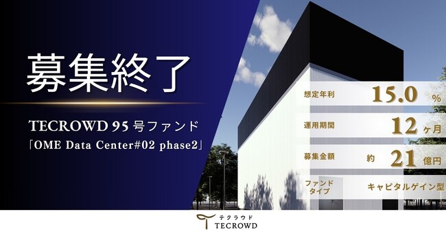 【想定年利15.0%】国内キャピタルゲイン型ファンド「OME Data Center#02 phase2」に投資するTECROWD95号ファンドの募集終了