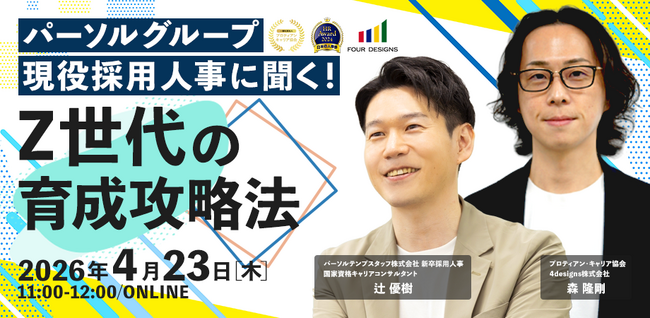 このたび、2026年4月23日(木)に、無料オンラインセミナー「パーソルグループ現役採用人事に聞く!Z世代の育成攻略法」を開催いたします。