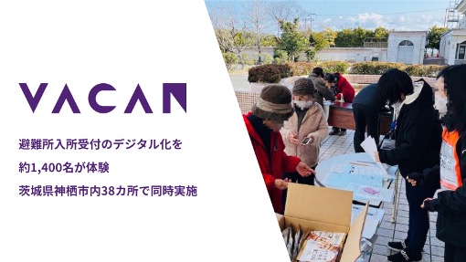 AI技術で混雑を可視化し、「人と空間を、テクノロジーで優しくつなぐ。」をミッションに、施設・エリアを支えるプラットフォームを活用したサービスを提供する株式会社バカン(本社:東京都中央区、代表取締役:河野剛進、以下「バカン」)は、2026年3月15日(日)に茨城県神栖市にて実施された「令和7年度神栖市総合防災訓練」において、市内38カ所の指定避難所で避難所入所受付のデジタル化の実証実験を実施しましたので、結果についてお知らせします。