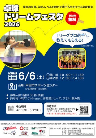 2026年6月6日(土) 卓球ドリームフェスタ2026 開催のお知らせ