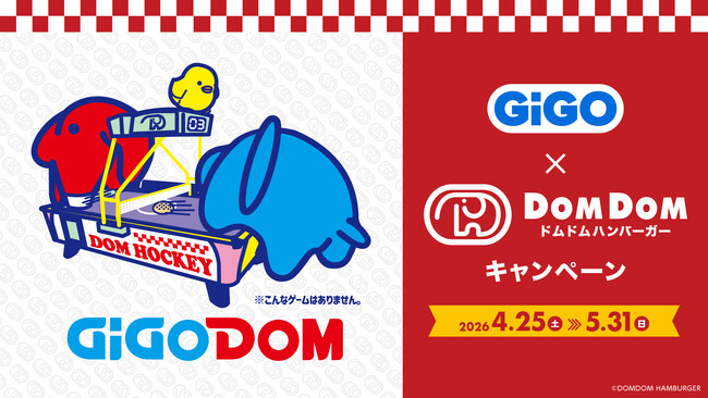 株式会社GENDA GiGO Entertainment(本社:東京都港区 代表取締役社長:二宮 一浩、以下「当社」)は、GiGOグループのお店において、2026年4月25日(土)より、株式会社ドムドムフードサービス(本社:東京都台東区 代表取締役社長:藤崎 忍)が運営する日本初のハンバーガーチェーン『ドムドムハンバーガー』とコラボレーションした、「GiGO×ドムドムハンバーガーキャンペーン」を開催いたします。