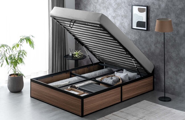 大型荷物も丸ごと収まる圧倒的容量で空間を有効活用!スぺパ抜群の『跳ね上げ式ベッドフレーム』を発売