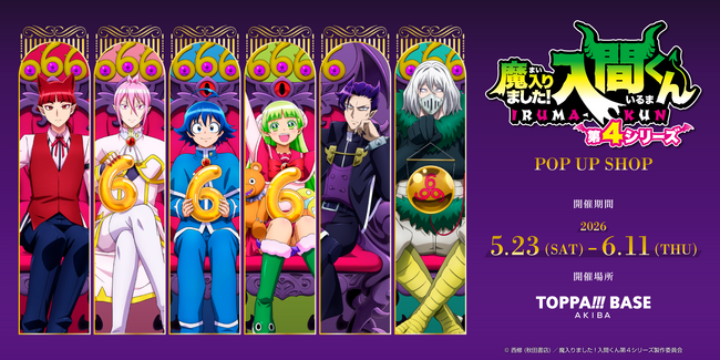 この度、2026年5月23日(土)から6月11日(木)まで、「TOPPA!!! BASE AKIBA」店舗にてアニメ「魔入りました!入間くん」とのコラボレーションを実施します。また、店舗でのコラボに先駆け、4月10日(金)から4月26日(日)まで、「TOPPA!!! BASE AKIBA」公式オンラインショップでグッズの予約受付を行います。