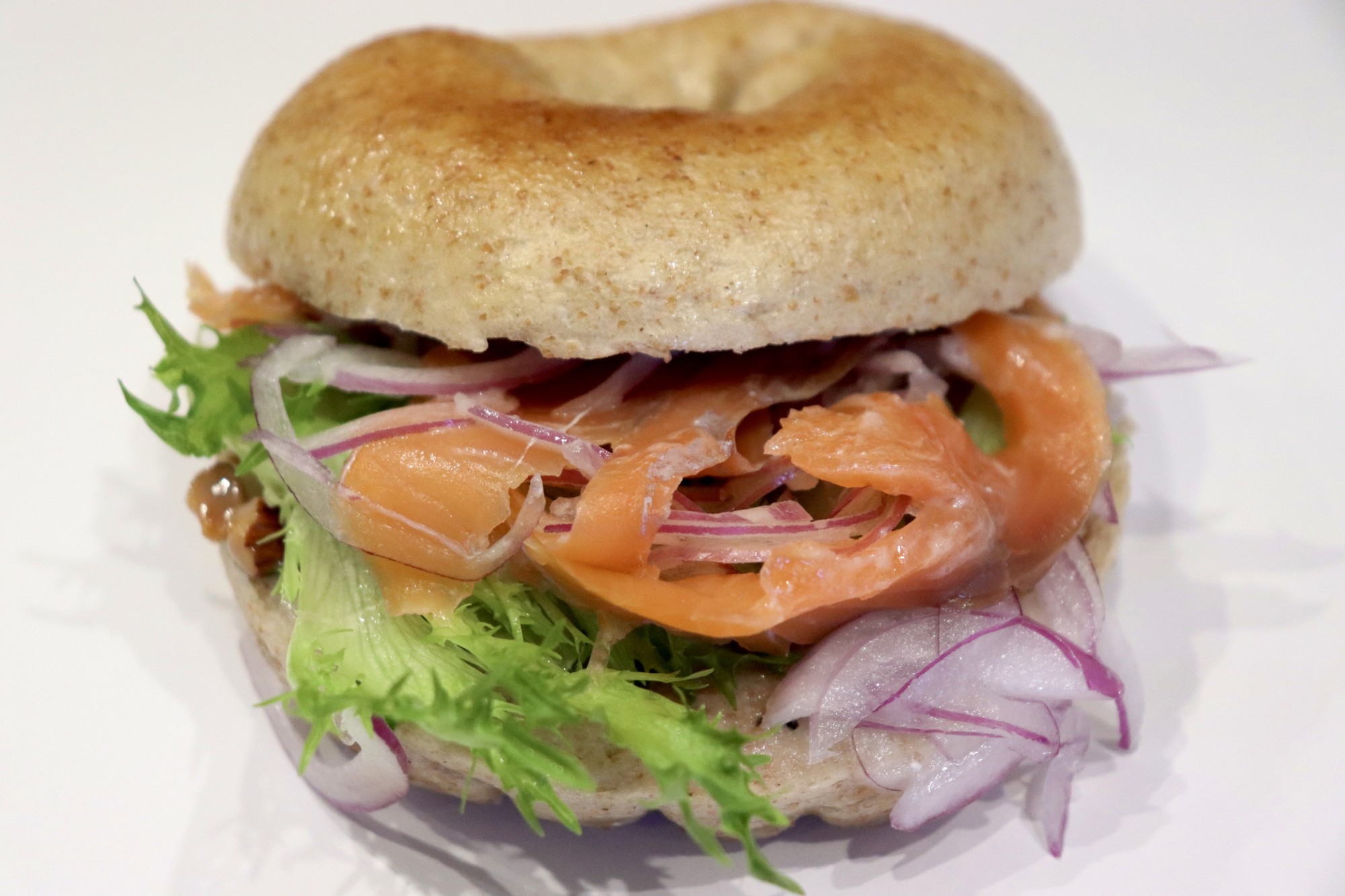 甘じょっぱい味わいが特徴の、サンセットにぴったりなベーグルサンドです。