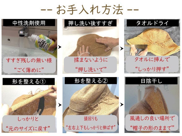 OJO+洗える手編みハットの洗濯方法フロー