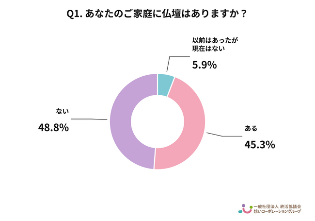 Q1. あなたのご家庭に仏壇はありますか?・ある 45.3%