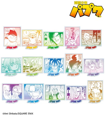 パプワくん、チャッピー、シンタロー、イトウくん、タンノくん、コタロー、ミヤギ、トットリ、アラシヤマ、グンマ、マジック総帥、ルーザー、ハーレム、サービス、リキッドのコマイラストをアクリルスタンドに仕上げました。