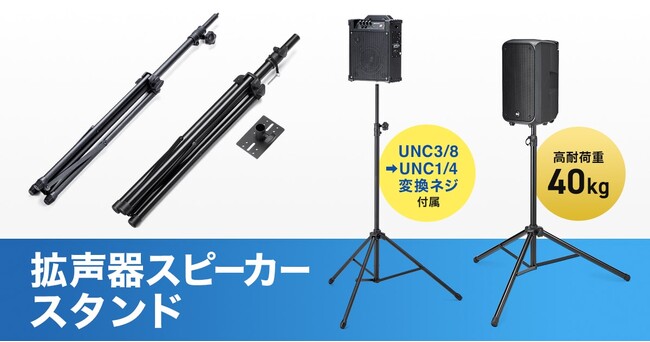 イベント設営をスムーズに。コンパクトに折りたためるサンワサプライ製拡声器スピーカー用スタンド2種を発売