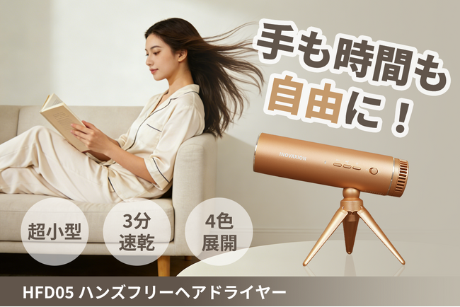 【超コンパクト】置くだけ、掛けるだけ。「HFD05」ハンズフリーヘアドライヤー。4月17日(金)11時にCAMPFIREにて登場。今すぐ事前登録最大50%OFF!