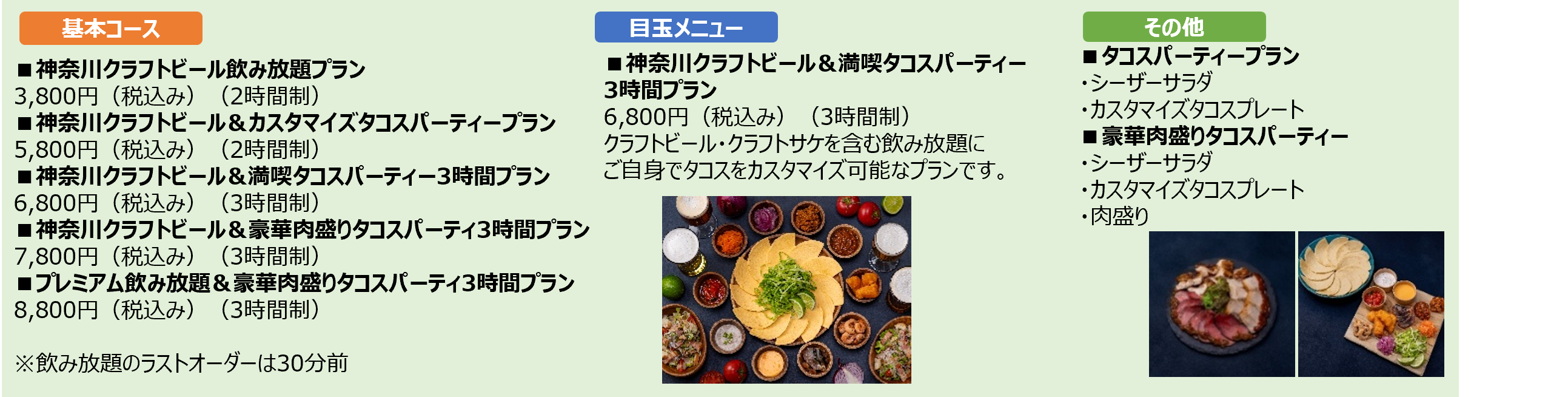 ・ここでしか味わえない!厚木の老舗醸造所「サンクトガーレン」と共同開発したクラフトビールを堪能!・今年のテーマは「タコス」!自分で具材をカスタマイズ&豪華肉盛りプランをご用意