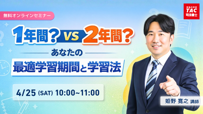 【TAC司法書士講座】「1年間?2年間?あなたの最適学習期間と学習法」オンラインセミナーのご案内