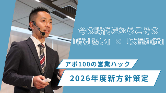 営業のパラドックスを突破する。「特別扱い」×「大量生産」の独自戦略を掲げ、「アポ100」の営業ハックが2026年度の新方針を策定。