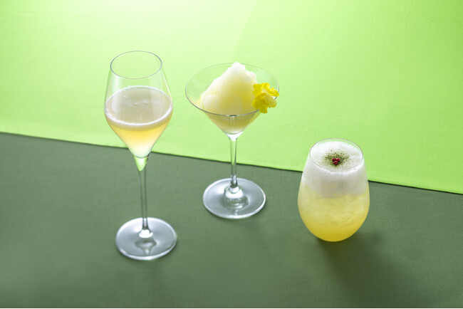 写真左より「メロン&スパークリングワイン」、「フローズンメロンダイキリ」、「メロン抹茶モヒート」イメージ