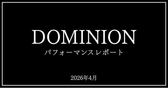 当社のDOMINIONのパフォーマンスレポートは以下のとおりです。[表: https://prtimes.jp/data/corp/171516/table/33_1_5a7196a88324a118b794c344ee0071f4.jpg?v=202604180115 ]