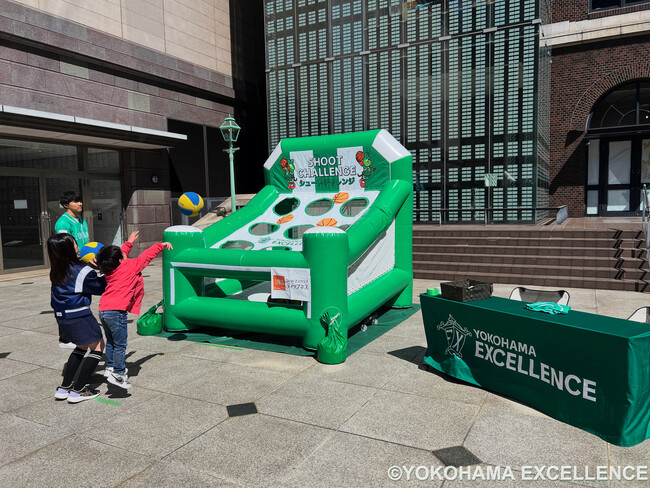 歩道の拡幅やベンチ・電源設備の整備などが行われリニューアルした「みなと大通り」にて開催された屋外で楽しめるイベントに、横浜エクセレンスも参加しました!