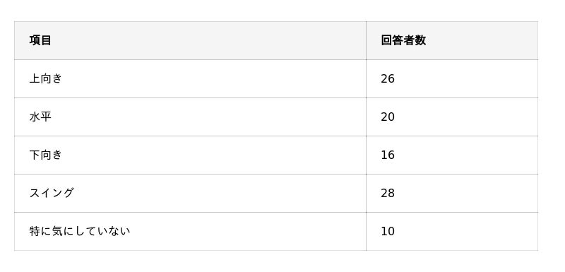 - 冷房使用時の風向きは「スイング」「上向き」に設定している人が多い。