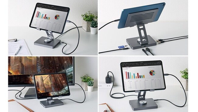 ドッキングステーション機能を搭載!ポート拡張や映像出力に対応するタブレットスタンドを新発売