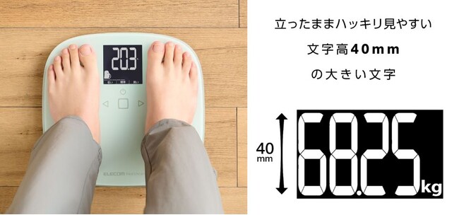 立ったままで測定結果がはっきり見やすい!40mmの大きな文字表示を採用した体組成計を新発売